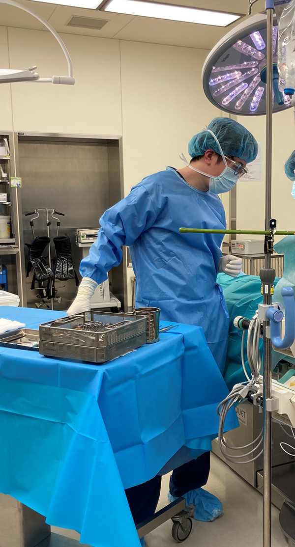 小児救急看護認定看護師を目指してこども病院に就職し、2 年間手術室で勤務しました。もともと救命救急に興味があり当院に転職しました。初めは救命救急を希望していましたが、面接での小児の手術経験だけでなく成人の周術期看護の経験も必要ではないか、という話に感銘を受け、中央手術室で勤務することを決めました。